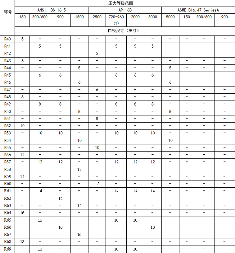 R型墊片的制造符合API 6A、6B和ASME b16.20適合API ASME/ANSI B16.5法蘭。在橢圓形和八角形配置,這兩種類型是可互換的現(xiàn)代八角型槽法蘭。
